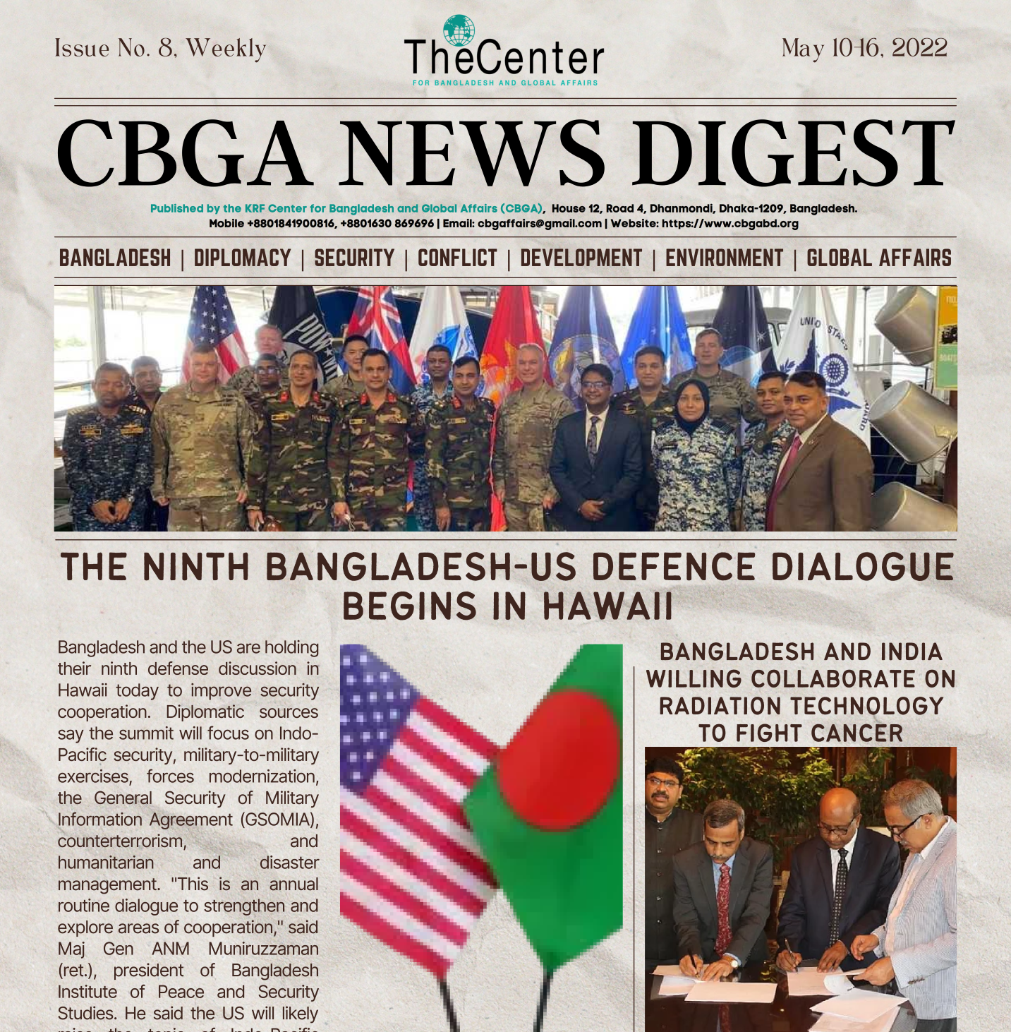 The Center for Bangladesh and Global Affairs- CBGA has published its 8th weekly News Digest. Here is the full pdf file for CBGA 8th weekly News Digest.