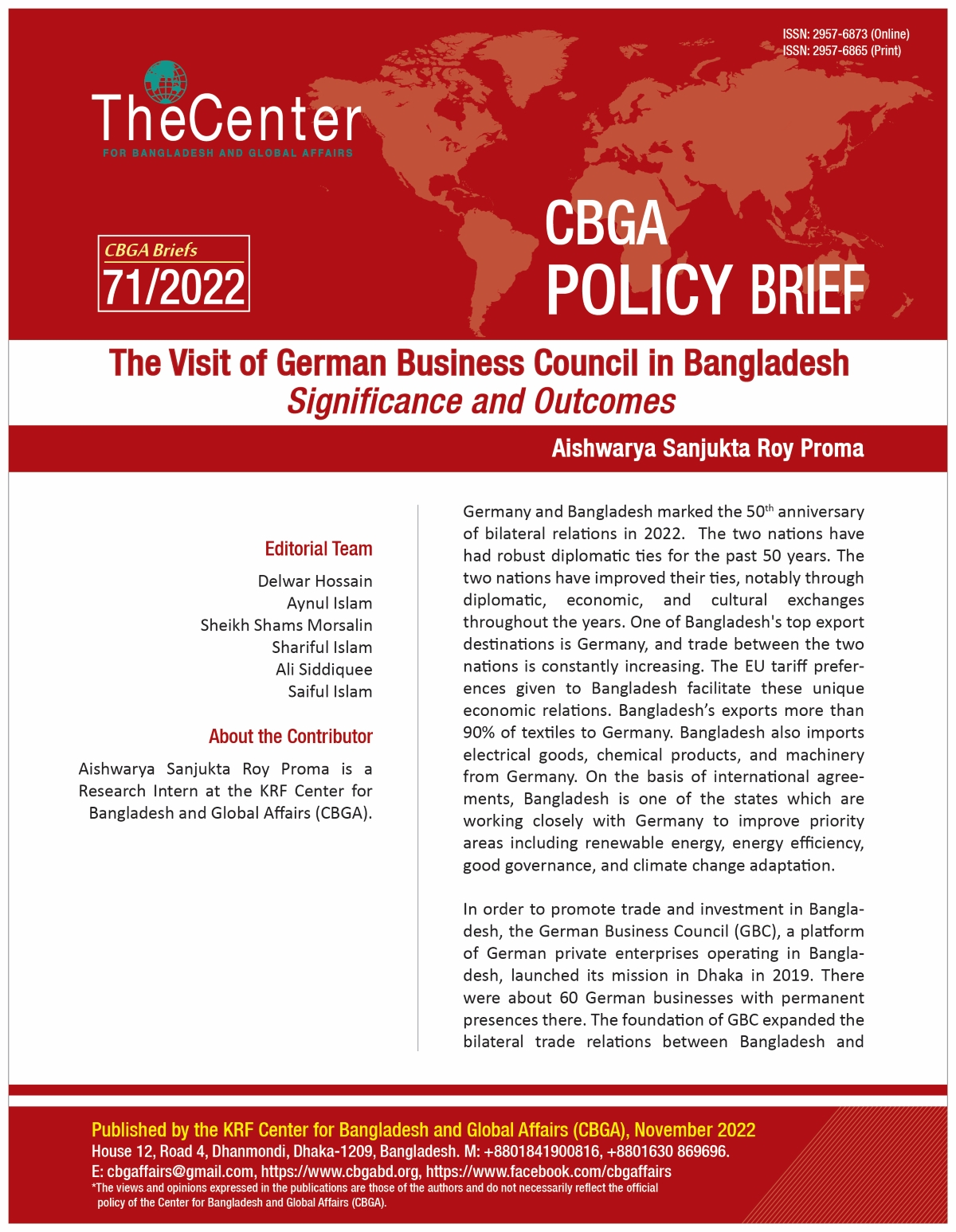 – Aishwarya Sanjukta Roy Proma is a Research Intern at the KRF Center for Bangladesh and Global Affairs (CBGA).