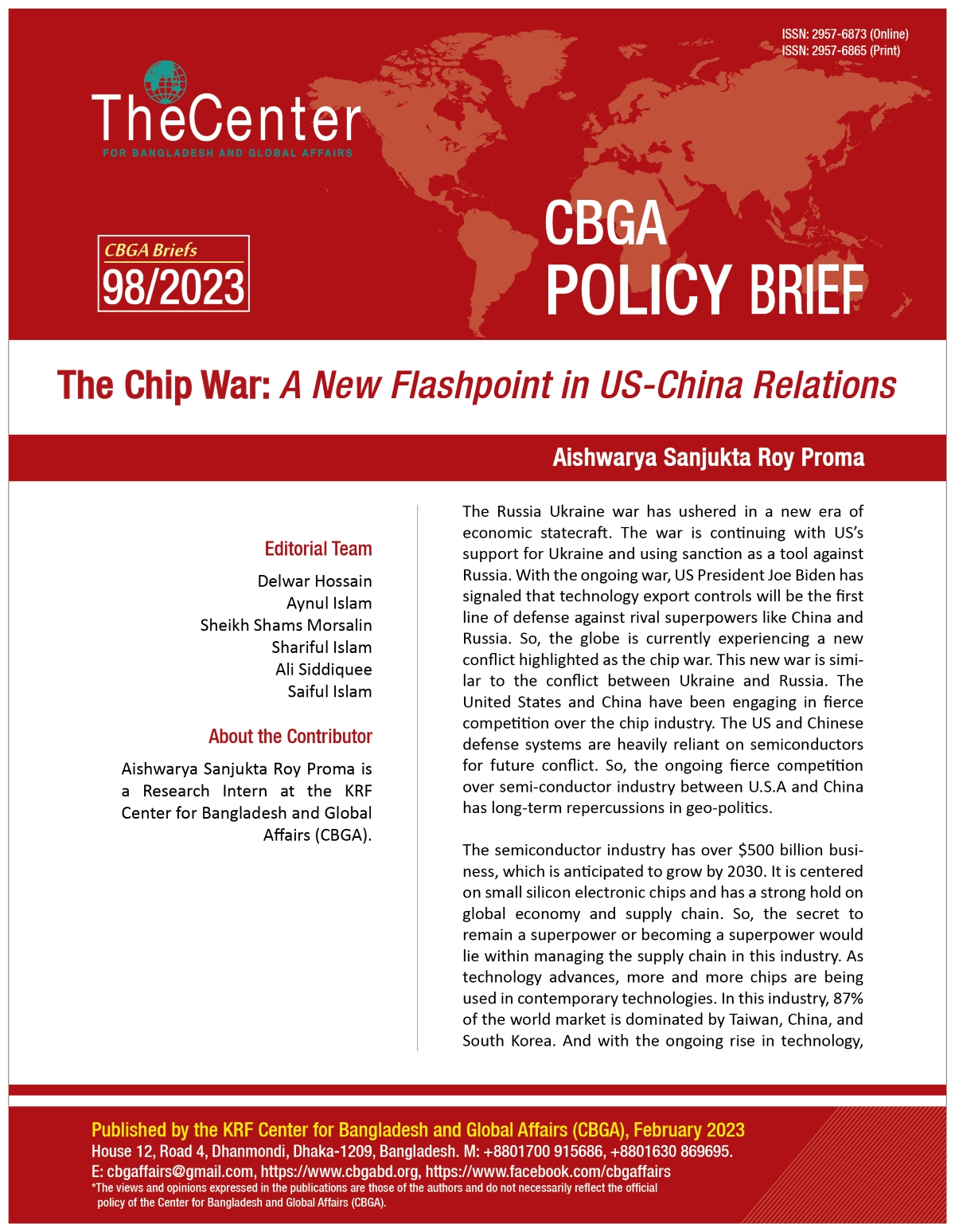 – Aishwarya Sanjukta Roy Proma is a Research Intern at the KRF Center for Bangladesh and Global Affairs (CBGA).
