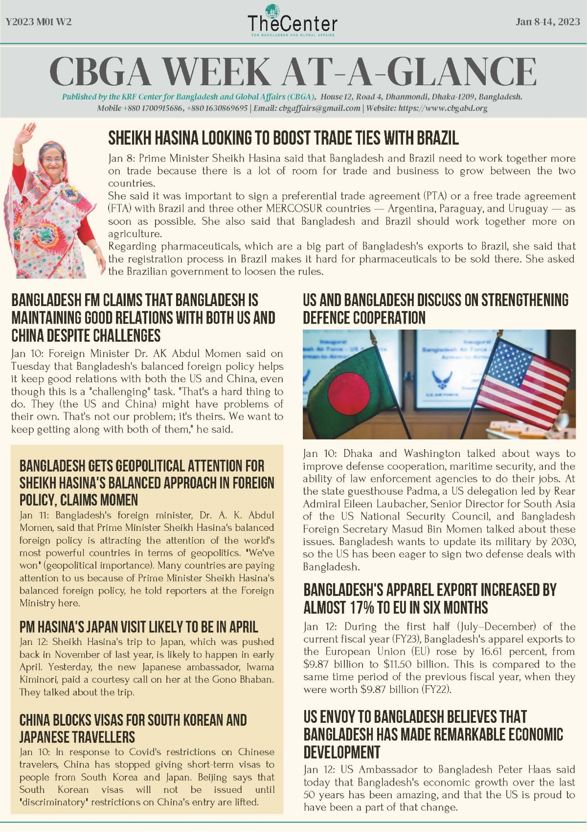 CBGA Week At-A-Glance 02, January 08-14 2023 By The KRF Center for Bangladesh and Global Affairs - Wednesday, February 15, 2023 241 CBGA has published its 2nd Week At-A-Glance. [Read as a Pdf]