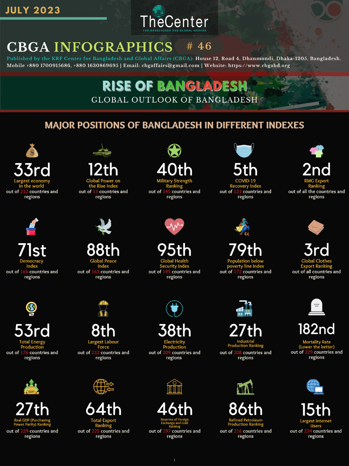 CBGA Infographics 46: Rise of Bangladesh: Global Outlook of Bangladesh By The KRF Center for Bangladesh and Global Affairs - Monday, July 24, 2023 584 CBGA presents you the 46th Infograph: Click for full Rise of Bangladesh: Global Outlook of Bangladesh