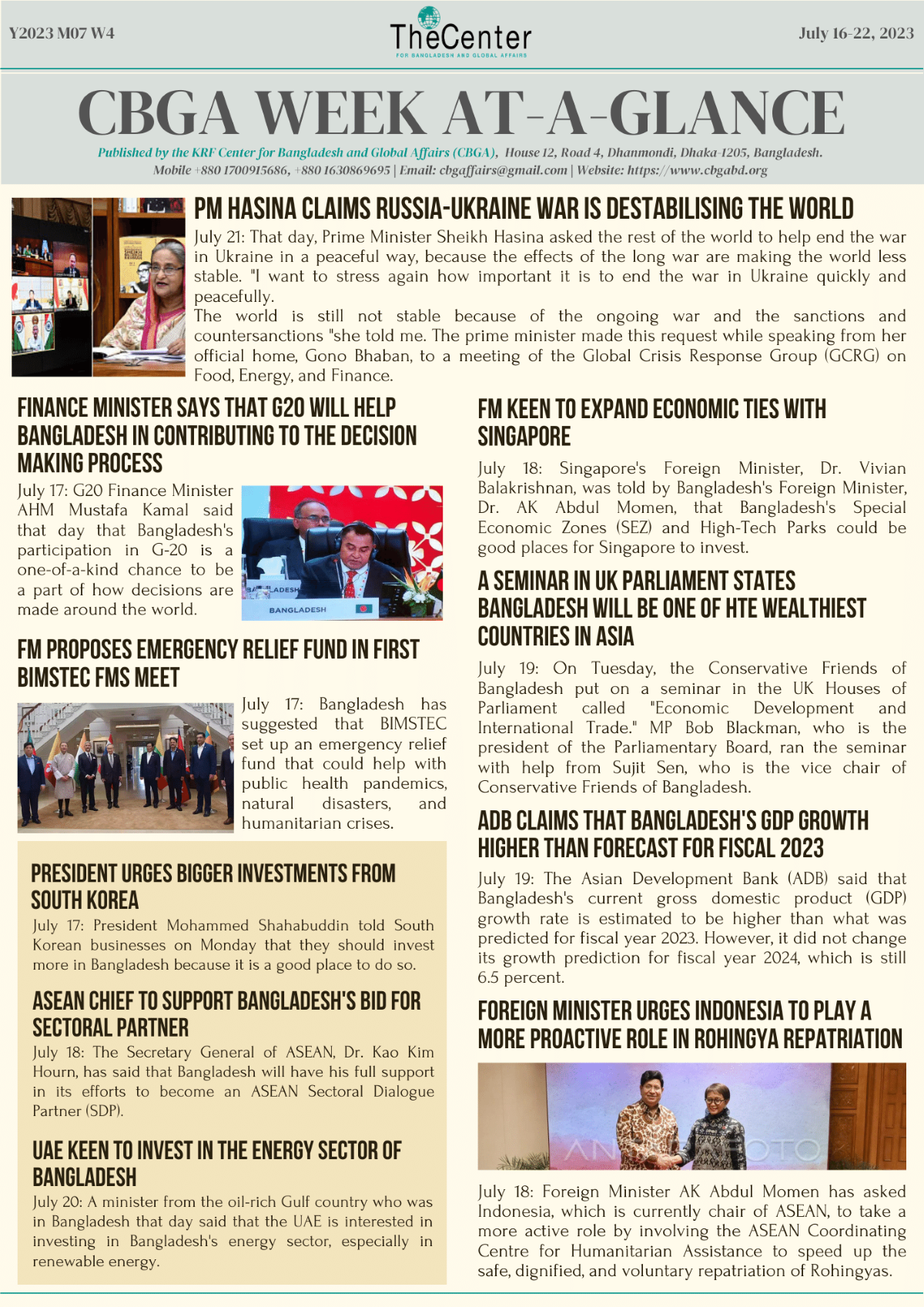 CBGA Week At-A-Glance 28, July 16-22, 2023 By The KRF Center for Bangladesh and Global Affairs - Monday, July 24, 2023 360 CBGA has published its 28th Week At-A-Glance. [Read Full as a Pdf]