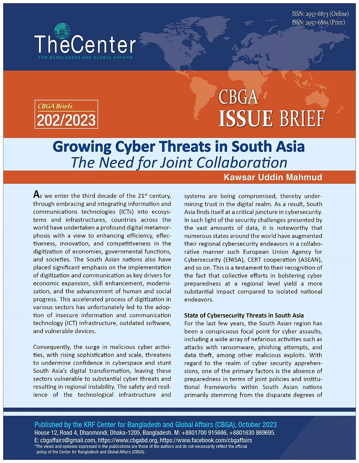 As we enter the third decade of the 21st century, through embracing and integrating information and communications technologies (ICTs) into ecosystems and infrastructures, countries across the world have undertaken a profound digital metamorphosis with a view to enhancing efficiency, effectiveness, innovation, and competitiveness in the digitization of economies, governmental functions, and societies. The South Asian nations also have placed significant emphasis on the implementation of digitization and communication as key drivers for economic expansion, skill enhancement, modernization, and the advancement of human and social progress. This accelerated process of digitization in various sectors has unfortunately led to the adoption of insecure information and communication technology (ICT) infrastructure, outdated software, and vulnerable devices.