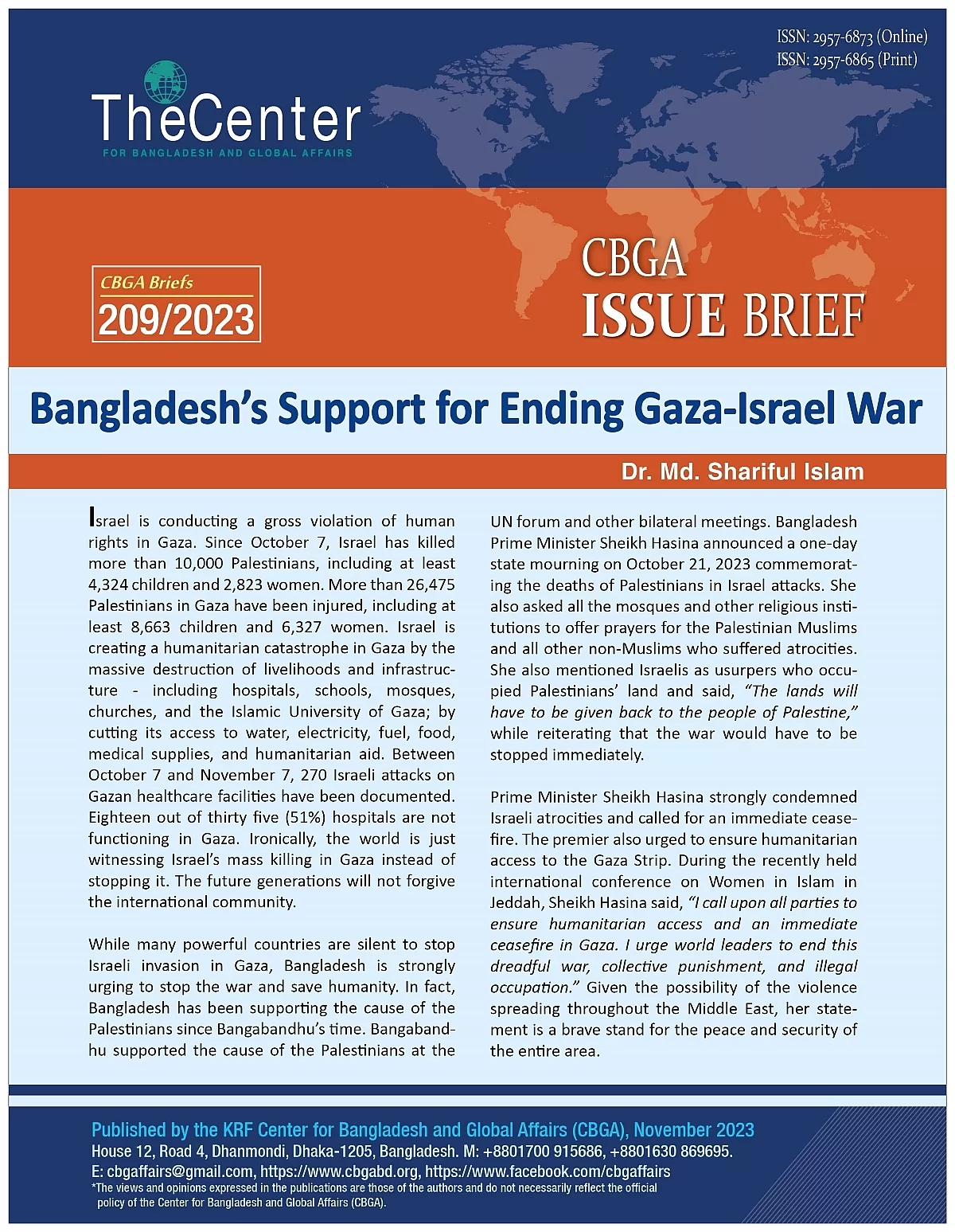 – Dr. Md. Shariful Islam is an Associate Professor of International Relations at the University of Rajshahi. He is also an adjunct Research Fellow at the KRF Center of Bangladesh and Global Affairs (CBGA), Dhaka, Bangladesh.