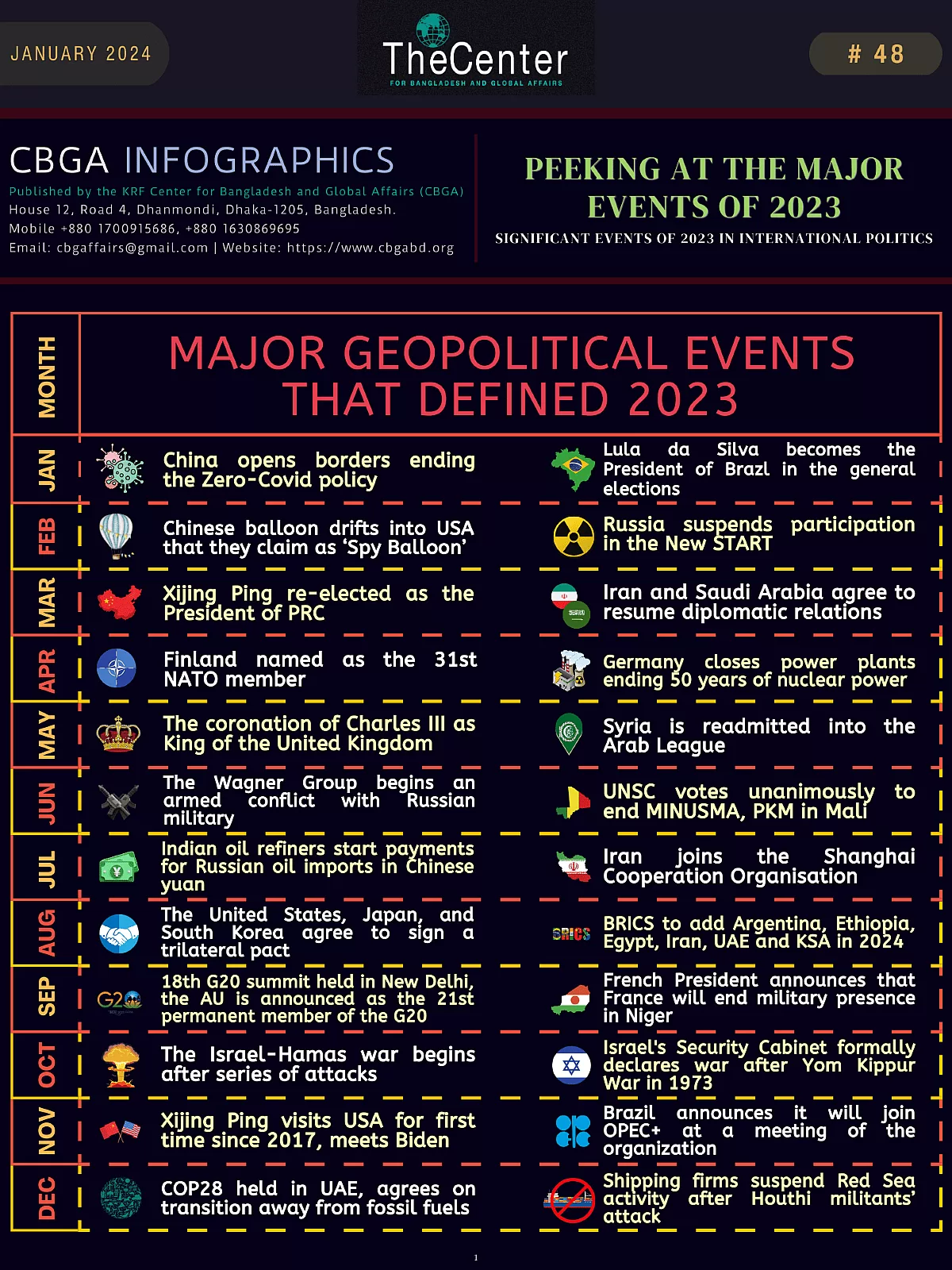 CBGA Infographics 48: Peeking at The Major Events of 2023: Significant Events of 2023 in International Politics
