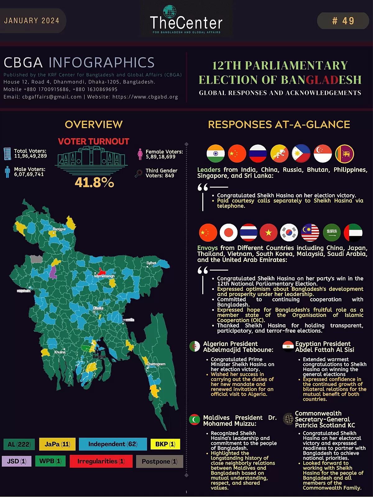 CBGA presents you the 49th Infograph: Click for full 12th Parliamentary Election of Bangladesh: Global Responses and Acknowledgements