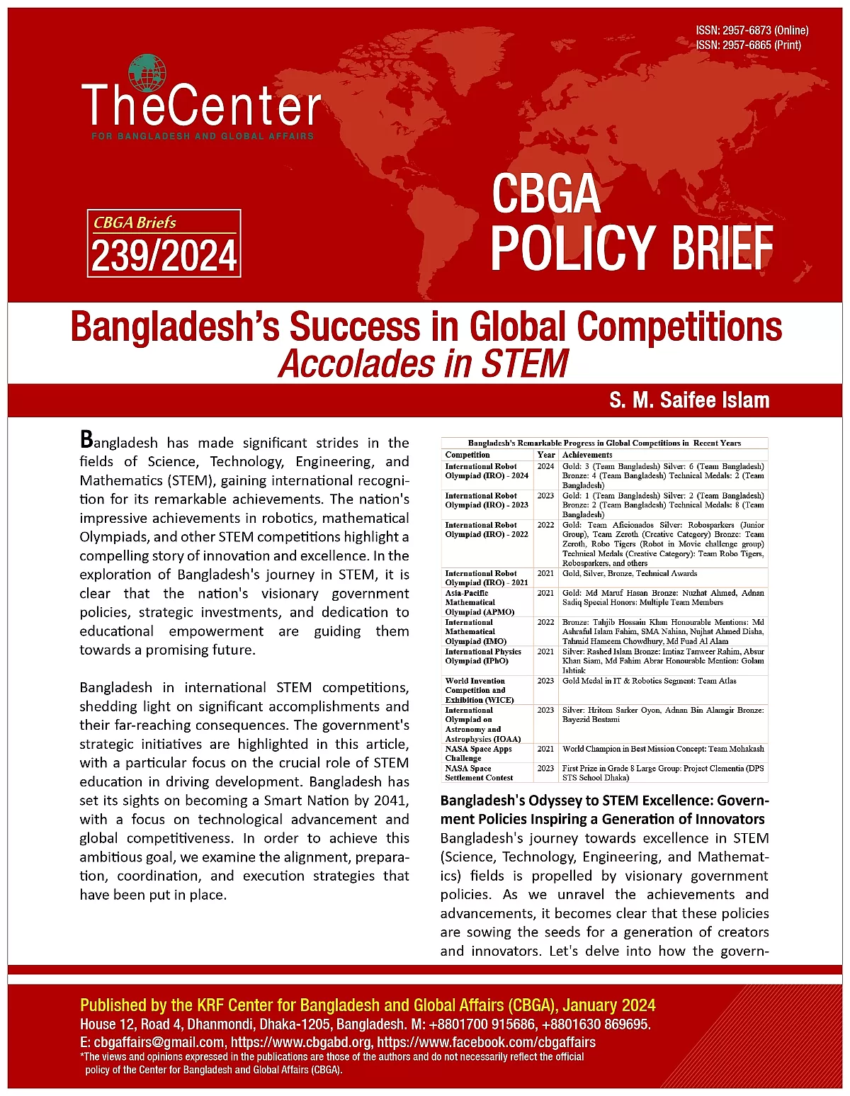 – S. M. Saifee Islam is a Research Associate at the KRF Center for Bangladesh and Global Affairs (CBGA).
