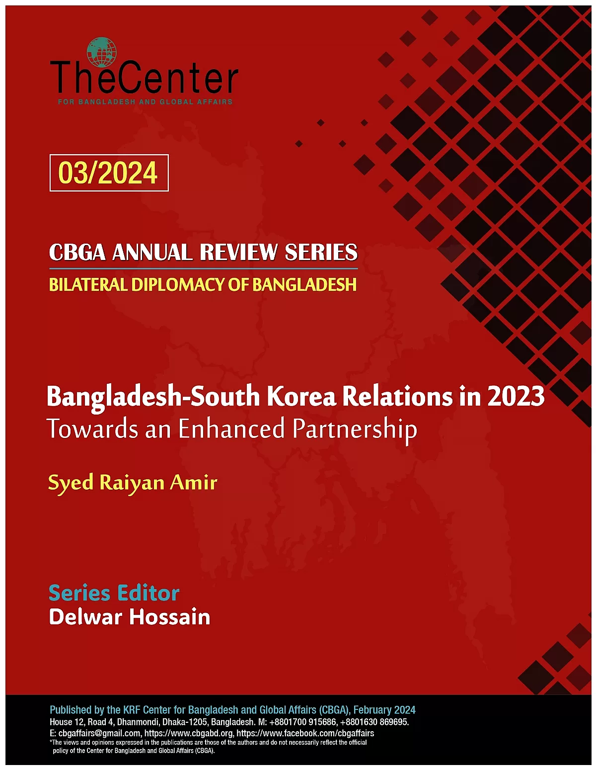 This brief overview explores the course of Bangladesh-South Korea relations in 2023, examining key events, initiatives, and the shared vision for future collaboration. By scrutinizing key events, such as the Joint PPP Platform meeting and bilateral agreements, the study aims to offer insights into the contemporary facets shaping this enduring partnership. Economic aspects, including trade volumes and major Korean investments, are analyzed to highlight the strategic significance of the relationship, particularly in the context of Bangladesh’s developmental aspirations. The study provides a concise and informative overview for policymakers, researchers, and the public, contributing to a nuanced understanding of the present state and future potential of Bangladesh-South Korea relations.