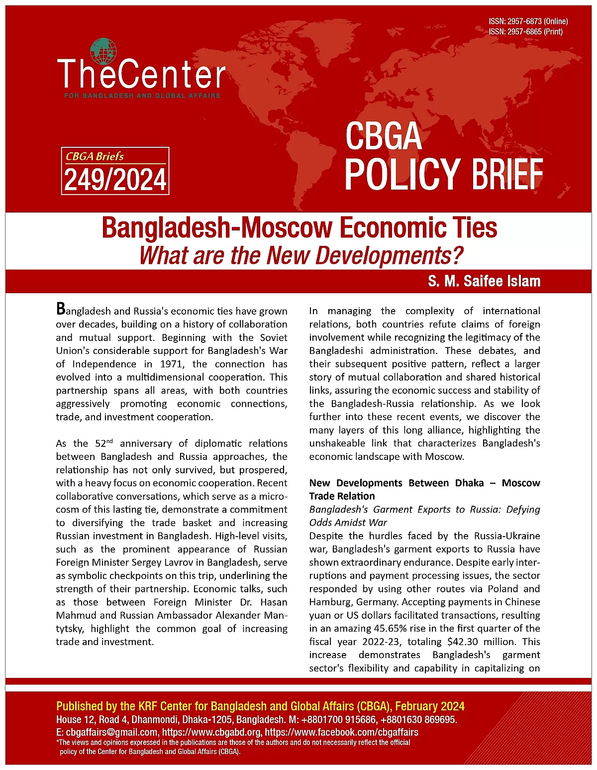 To summarize, Bangladesh and Russia’s decades-long economic connections have endured the test of time, maturing into a multidimensional alliance based on historical collaboration. The connection began with major Soviet Union backing during Bangladesh’s War of Independence in 1971 and has grown greatly since then. Recent developments in Bangladesh-Russia economic ties tell a story of resilience, adaptation, and common goals for mutual prosperity. Notably, the garment industry’s exceptional survival throughout the Russia-Ukraine conflict demonstrates Bangladesh’s economic resiliency. Despite early interruptions and payment processing issues, the industry saw 45.65% growth in the first quarter of the fiscal year 2022-23. Russia’s strategic trade proposals, which include a government-to-government (G to G) structure for agricultural exports and LNG supplies, demonstrate a forward-thinking attitude. Bangladesh’s total exports to Russia increased by 37.80% in the first four months of the fiscal year 2023-24, indicating a favorable trend. As the nation’s investigate opportunities for dual-currency commerce, wheat exports, and strategic initiatives, Bangladesh-Moscow’s economic connection seems bright and long-lasting.