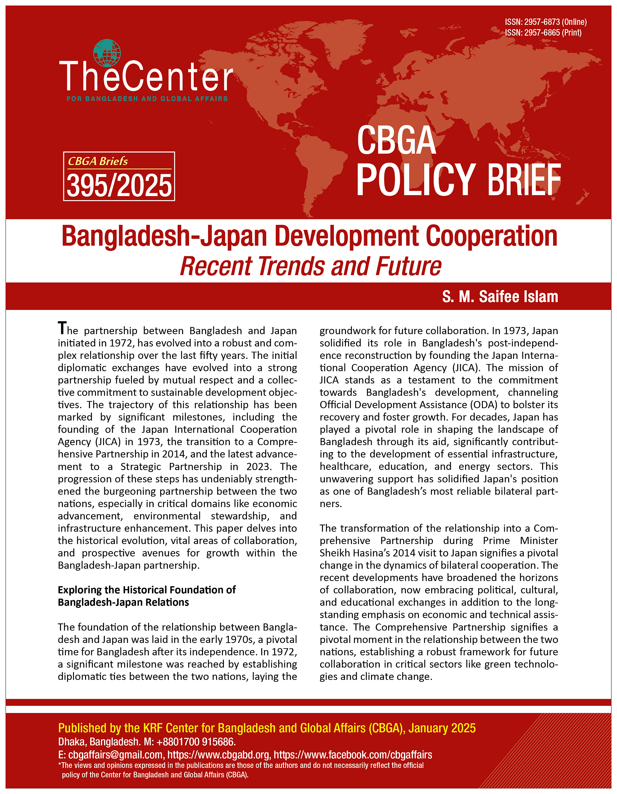 In conclusion, the bond between Bangladesh and Japan has undergone a remarkable transformation since it began in 1972, evolving into a vibrant and complex partnership. The recent elevation to a Strategic Partnership in 2023 marks a pivotal moment for both countries, setting the stage for enhanced collaboration in critical domains, including infrastructure development, digitalization, climate change, and sustainable growth. This development is not merely a formality; it represents a commitment to addressing some of the most pressing challenges of our time through cooperative efforts. The partnership between Bangladesh and Japan stands as a beacon of potential, ripe with opportunities that promise mutual benefit. These two nations can realize their common aspirations for economic prosperity, environmental sustainability, and technological advancement through sustained investment and collaboration.